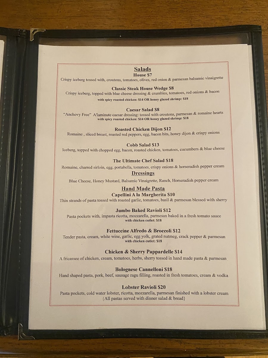 The salad section provides a variety of fresh and flavorful options, from the simple yet satisfying House Salad to the hearty Classic Steak House Wedge. For a more classic option, the Caesar Salad is always a favorite. If you’re in the mood for something more substantial, the Roasted Chicken Dijon and Cobb Salad offer delicious, protein-packed alternatives.