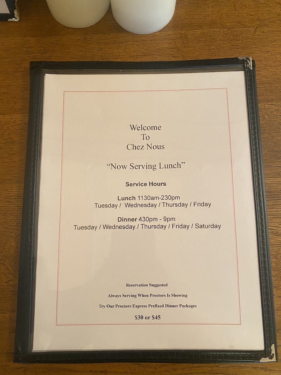 Overall, Chez Nous offers a diverse and satisfying menu that caters to various tastes and preferences, from classic comfort food to more inventive and unique dishes. Whether you’re in the mood for something light or indulgent, there’s something for everyone to enjoy.